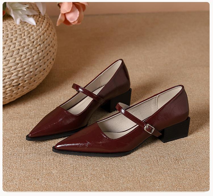 Весенне-осенние простые универсальные туфли-лодочки с острым носком, одинарные, в стиле мори, ретро, нишевые, с пряжкой, на толстом каблуке, маленькие кожаные туфли, женские 39 бордовый