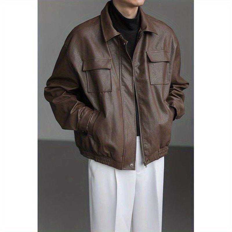 Весенне-осенняя высококачественная свободная кожаная куртка, рабочая одежда, крутая и прочная мотоциклетная куртка в ретро-стиле из искусственной кожи, мужские и женские стили XL коричневый