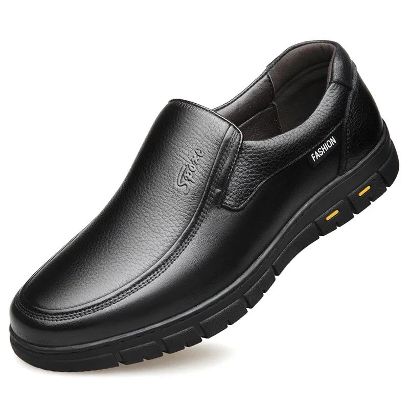 Весенне-осенняя деловая повседневная кожаная обувь, мужская обувь из мягкой кожи, универсальная деловая повседневная обувь, теплая хлопковая обувь 38 чёрный