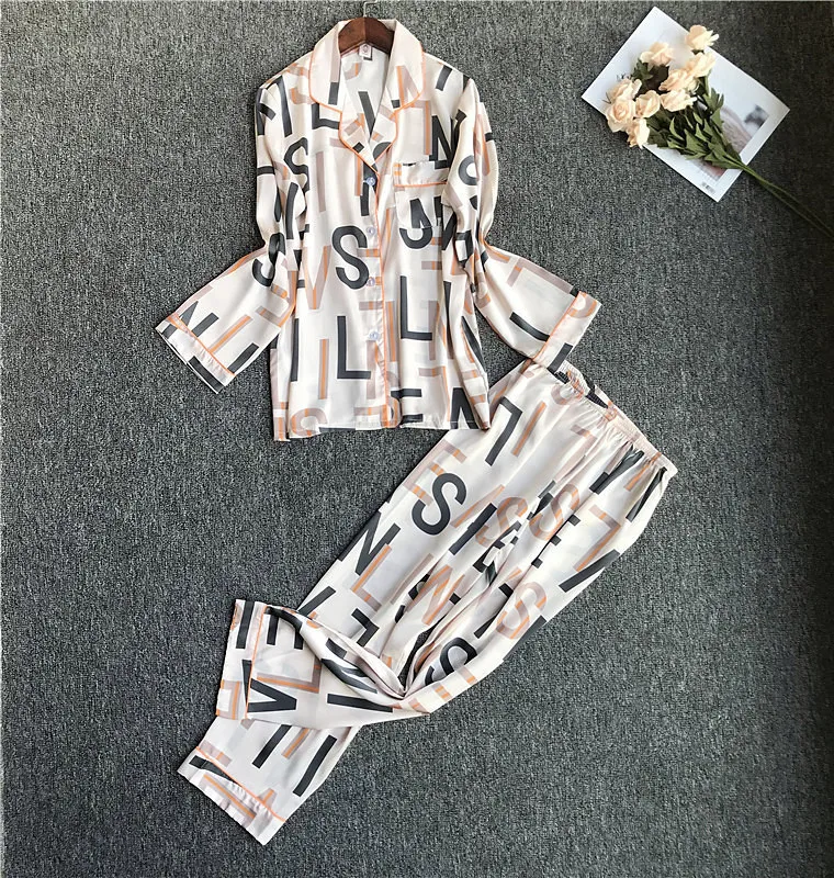 Весенне-осенняя женская пижама, тонкая Милая Домашняя одежда с длинным рукавом, одежда для сна из ледяного шелка, Корейская версия, новинка, ...