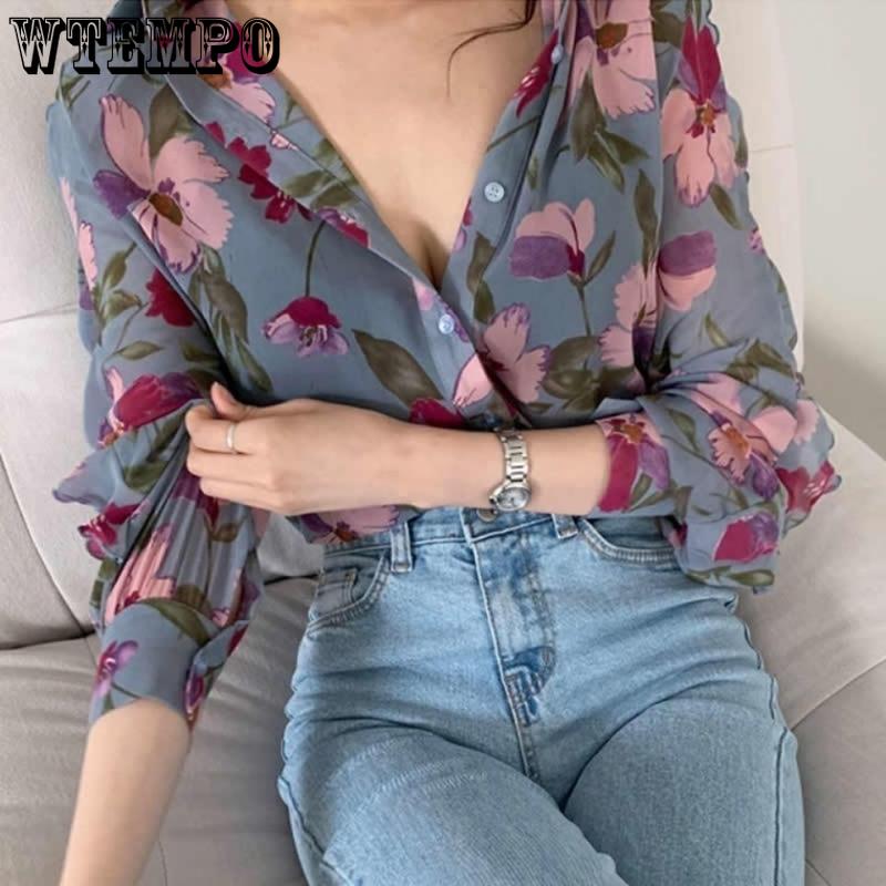Весенне-осенняя женская рубашка, легкая фрагментированная шифоновая рубашка, маленькая рубашка в западном стиле, универсальная рубашка с длинными рукавами и дизайном