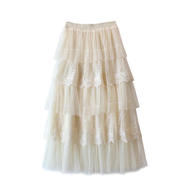 Весенне-осенняя женская юбка, кружевная юбка в горошек, супер-фея, сари, торт, юбка до половины тела One Size абрикосовый