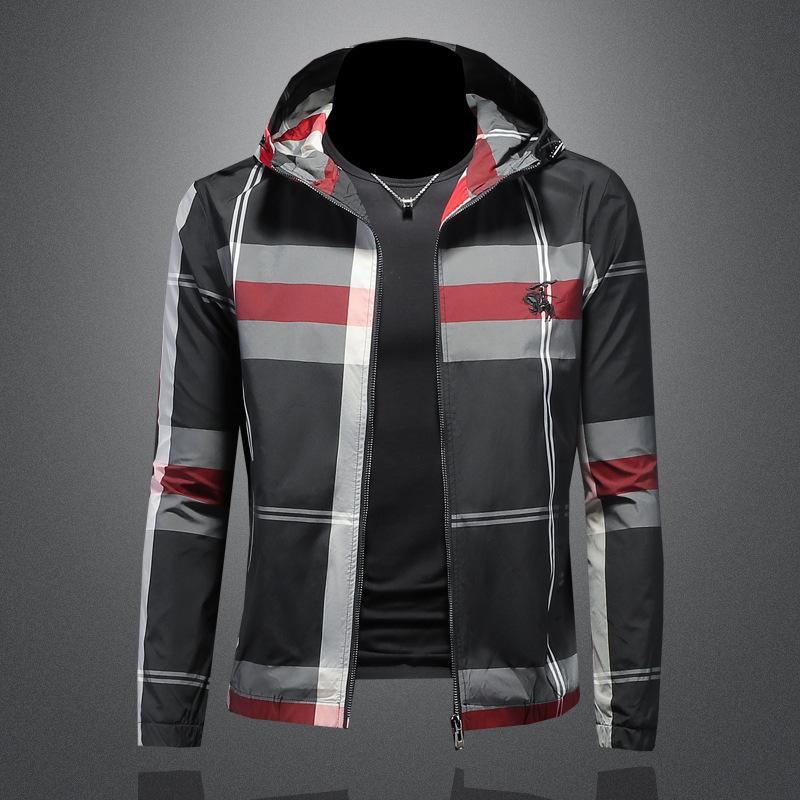 Весенне-осенняя новая мужская клетчатая куртка с капюшоном, повседневная, приталенная, модная куртка-топ M чёрный