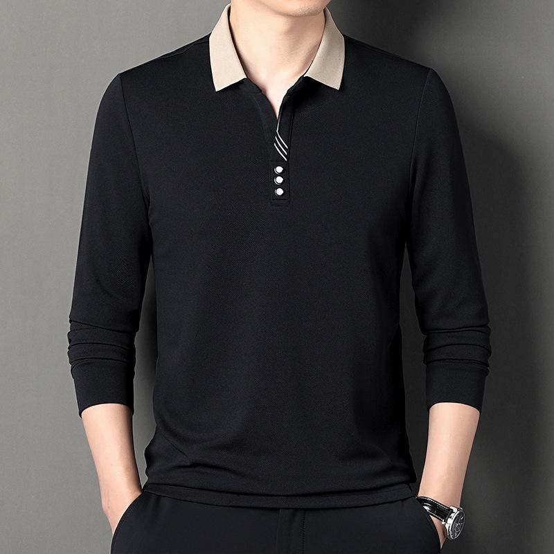 Весенне-осенняя новая мужская футболка с длинным рукавом с лацканами, молодежная повседневная модная мужская футболка вафельного кроя, модный топ XXXXL