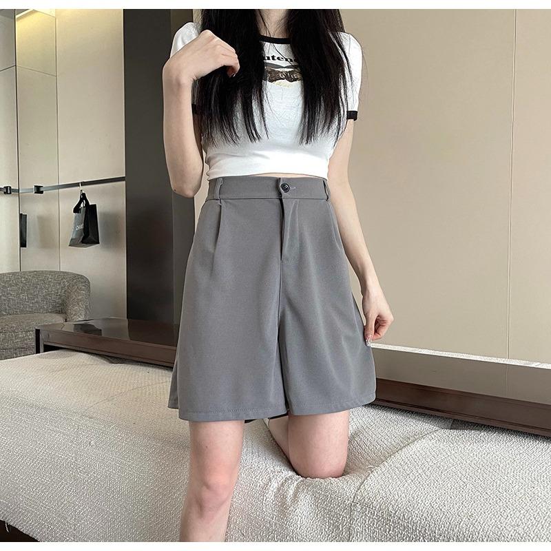 Весенние и летние брюки с 5-точечным ремешком, простые повседневные шорты для костюма, женские свободные повседневные брюки в корейском стиле с высокой талией и широкими штанинами 4XL серый