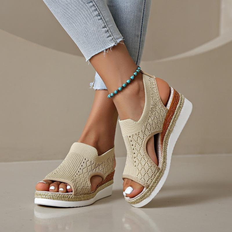 Весенние и летние новые сандалии с плетеным узором «рыбий рот», женские сетчатые дышащие босоножки на танкетке, большие размеры, популярные пляжные сандалии 43 абрикосовый