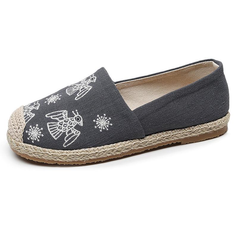 Весенние и летние повседневные женские туфли, низкие туфли из ткани с вышивкой по льняному краю, свежие и дышащие прошитые туфли для рыбалки 40 серый