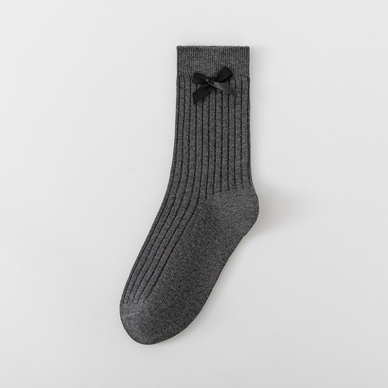Весенние однотонные носки, Женские хлопковые носки, Длинные чулки с ремешками, Банты, Вертикальная полоска, Носки до середины икры 1 pair темно-серого