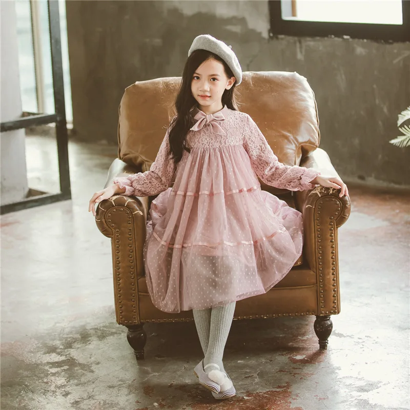 Весенние сетчатые платья в горошек для маленьких девочек; кружевное лоскутное платье принцессы для девочек; детская одежда; детское платье ...