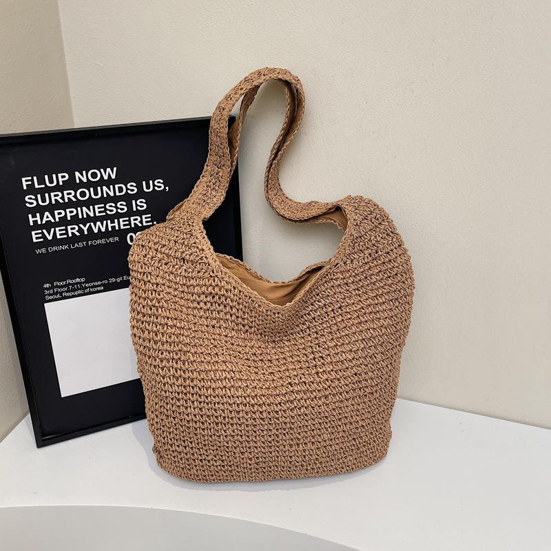 Весенний отпускной стиль Соломенная плетеная сумка Большая вместимость Милый бант Сумка на плечо/подмышку Повседневная пляжная плетеная сумка хаки