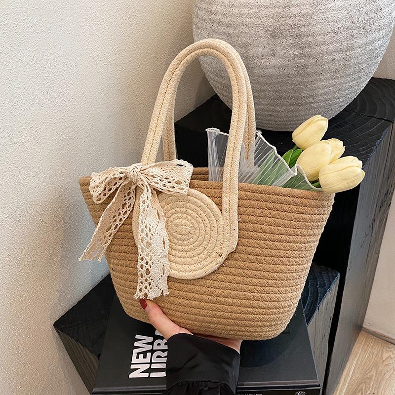 Весенний тренд женской моды 2025: Вязаная соломенная сумка-тоут большой вместимости