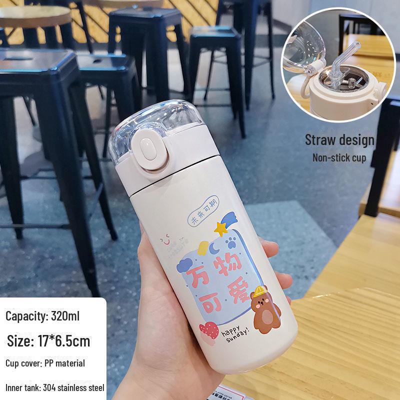 Весенний чехол Симпатичная термокружка в лесном стиле для девочек - Портативная нержавеющая сталь кроссбоди мультяшная кружка для воды 320ml cup