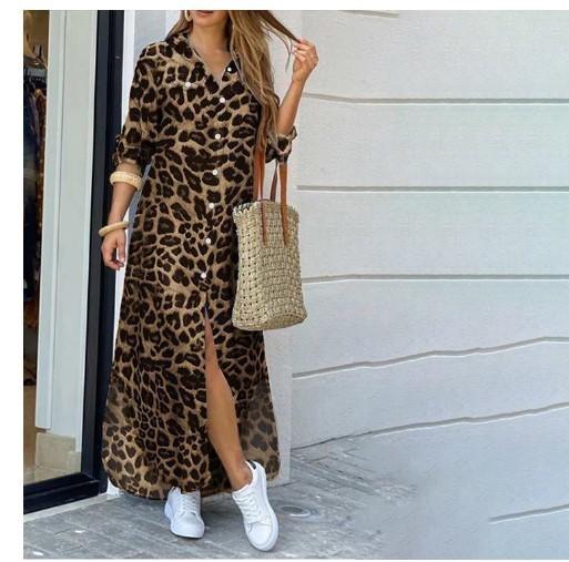 Весенняя Мода Сексуальная Однобортная Рубашка Длинная Юбка Свободное Платье с Лацканами M коричневый