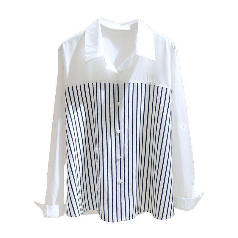 Весенняя женская новая полосатая дизайнерская маленькая блузка, свободная тонкая повседневная удобная белая рубашка больших размеров S белый
