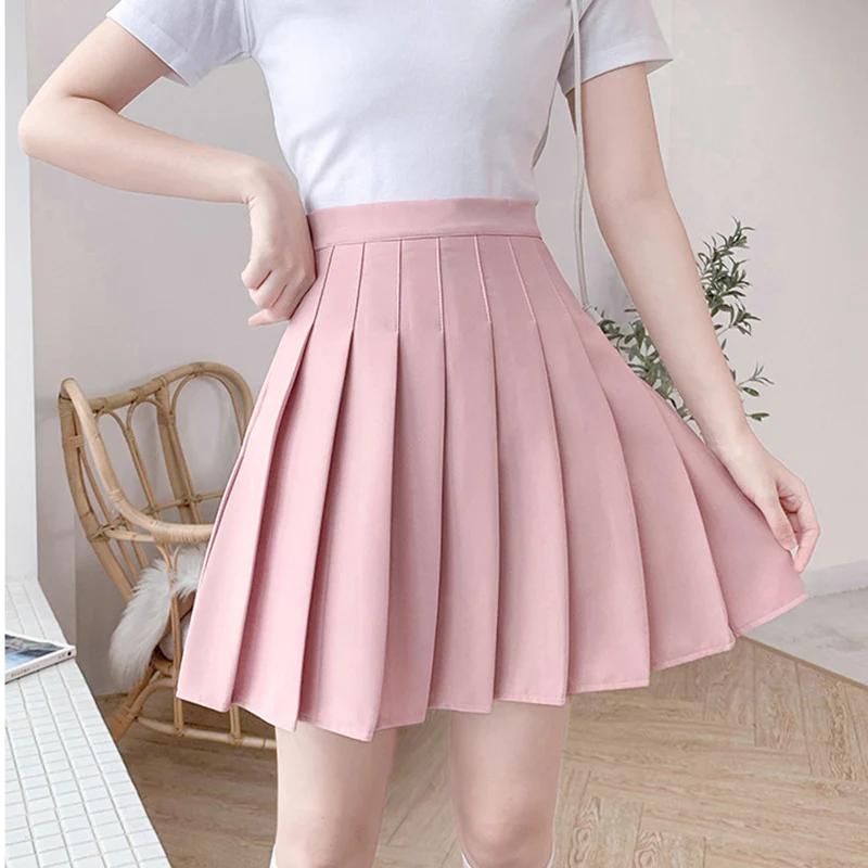 Весенняя женская плиссированная юбка, милая школьная форма для девочек, юбка, черная, белая танцевальная юбка с высокой талией, модные женск...