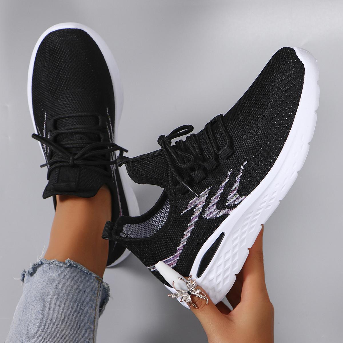 Весенняя женская спортивная обувь, модная, дышащая, легкая, нескользящая, износостойкая, повседневная спортивная обувь, туфли на плоской подошве 37 чёрный