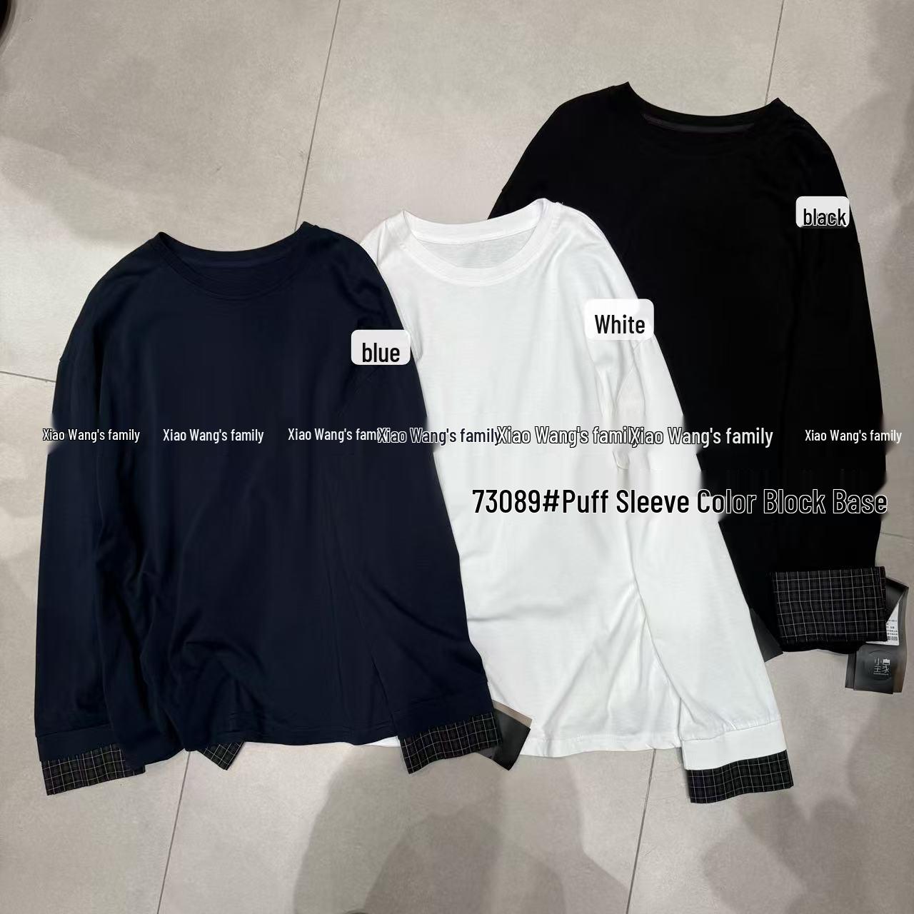 Весенняя корейская футболка большого размера с пэчворком и длинным рукавом от Сяо Вана, 2023 One Size чёрный