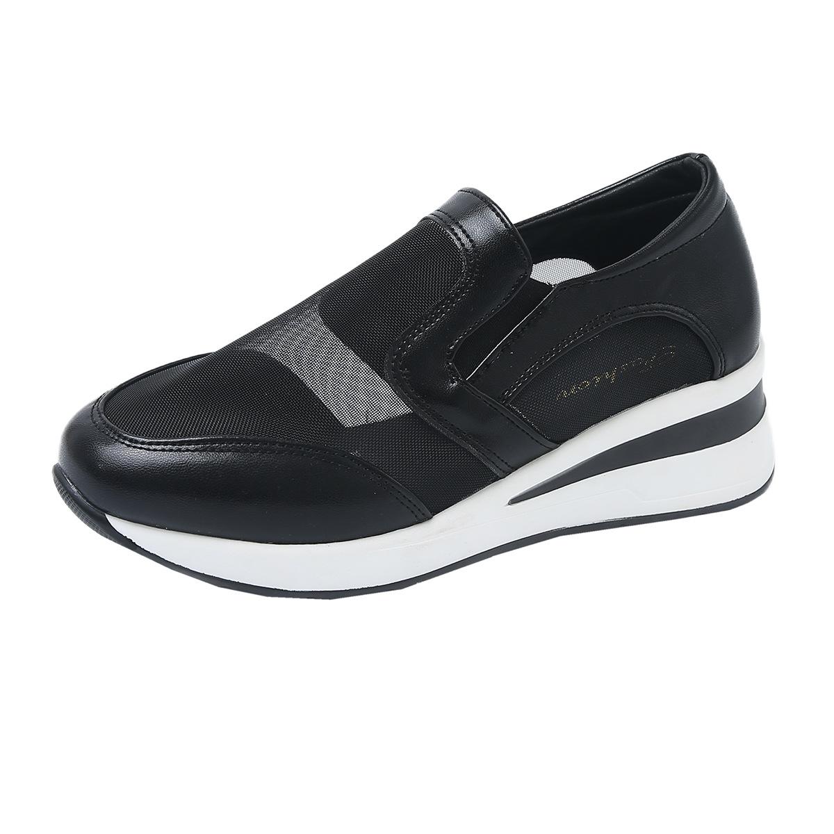 Весенняя и летняя обувь, удобная сетчатая обувь больших размеров, спортивная обувь на платформе с круглым носком, повседневная женская обувь 42 чёрный