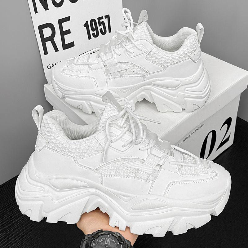 Весенняя мужская обувь, новые дышащие сетчатые туфли, мужская мода, универсальные маленькие белые туфли, спортивная обувь на платформе, повседневная обувь для папы 44