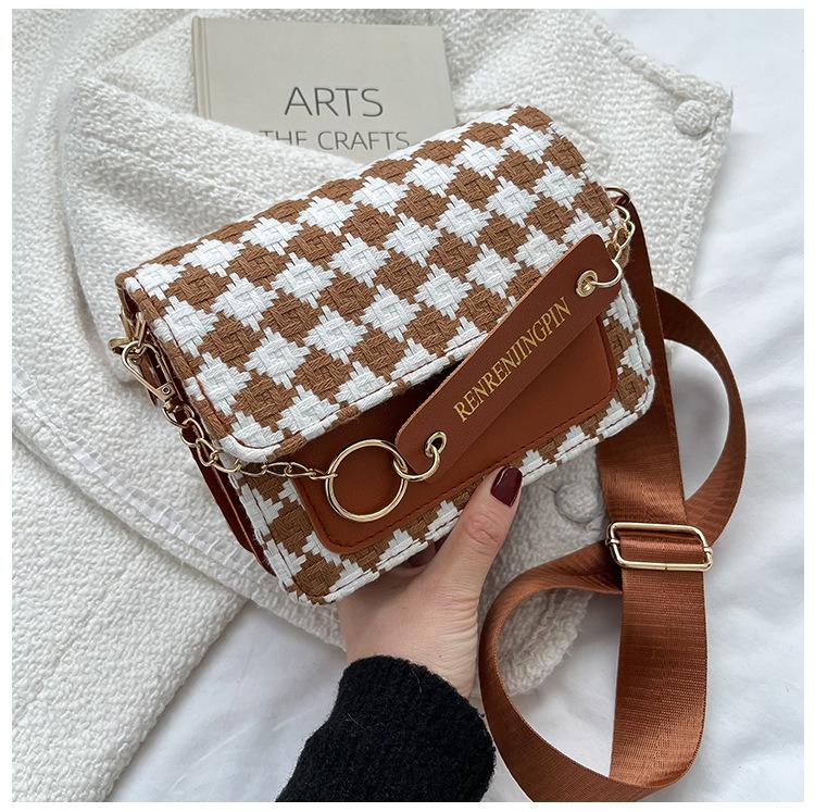 Весенняя новая женская сумка 2024 года, популярная модная шерстяная сумка через плечо, маленькая квадратная сумка корейского производства, универсальная широкополосная сумка-мессенджер