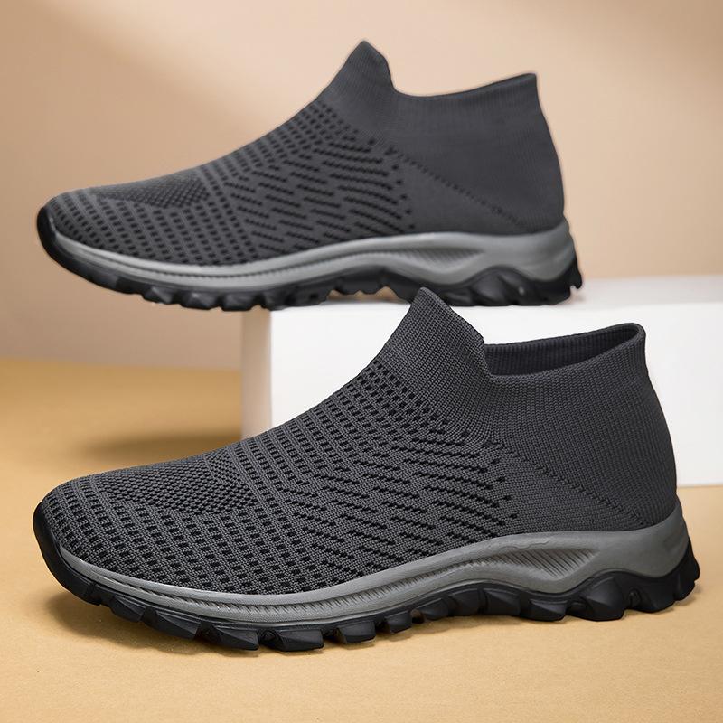 Весенняя новая мужская обувь повседневная обувь дышащая вязаная спортивная обувь ленивая обувь мужская с круглым носком одинарная обувь 46 темно-серого