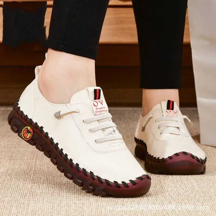 Весенняя повседневная женская обувь, лоферы на платформе, кожаные туфли на плоской подошве со шнуровкой, обувь для мам без шнуровки