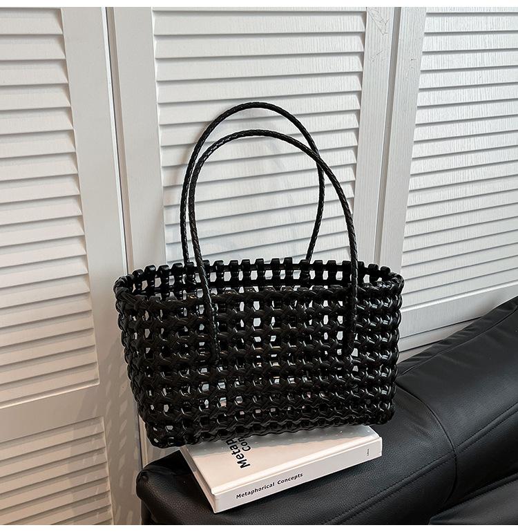 Весенняя полая пляжная сумка плетеная сумка летняя нишевая сумка-корзина для овощей приморский отпуск портативная сумка на плечо чёрный