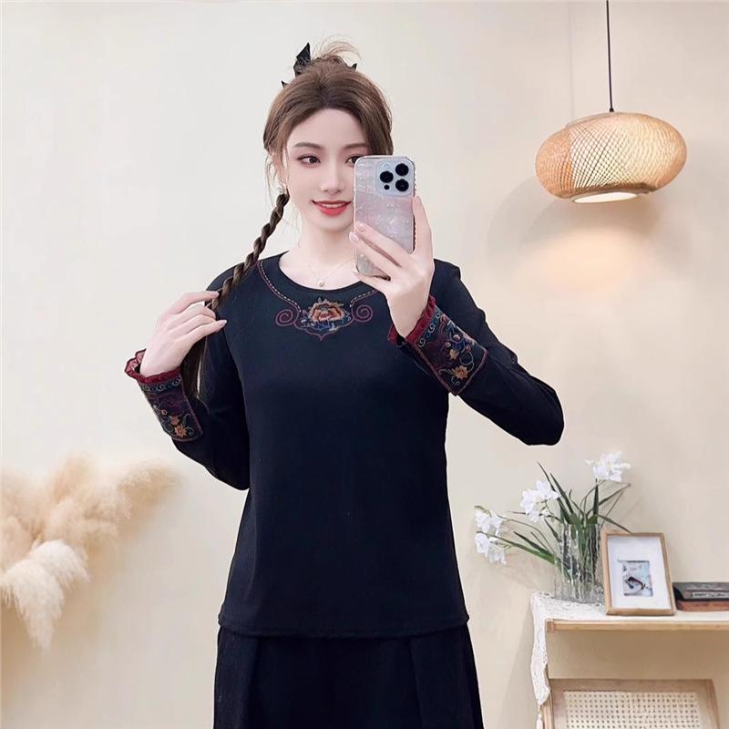 Весенняя футболка для девочки с круглым вырезом, приталенная, с вышивкой, из модального хлопка Large чёрный