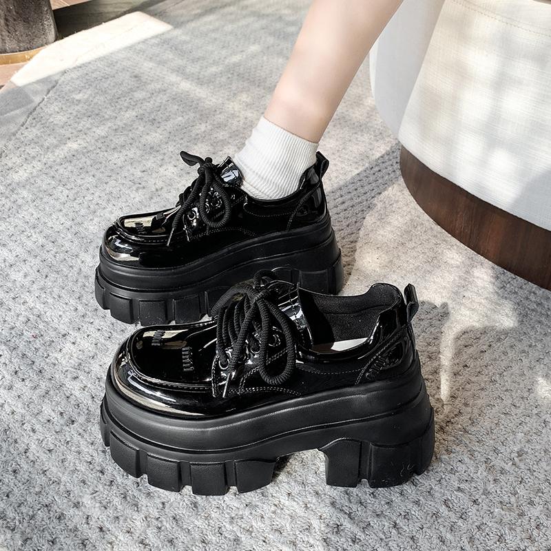 Весна Лето Британская Обувь Женская Лакированная Кожа Туфли на Платформе Высокая Платформа Массивный Каблук Лодочки 8СМ zapatos de mujer 34