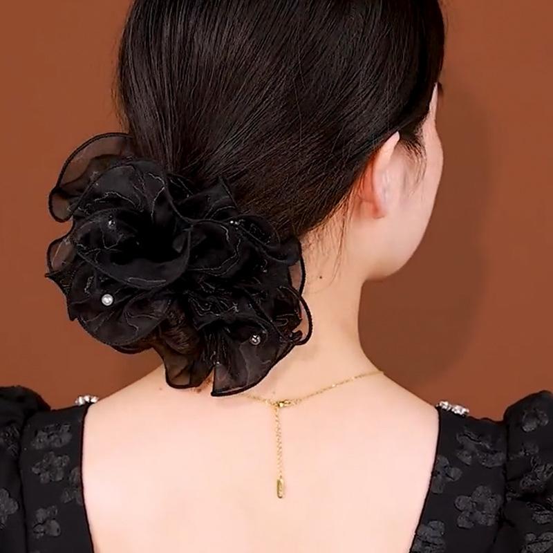 Весна и Лето Новая Модная Жемчужная Инкрустация Кольцо для Волос Очень Большой Черный Головной Убор Цветок Прическа Пучок Большие Резинки для Волос для Женщин