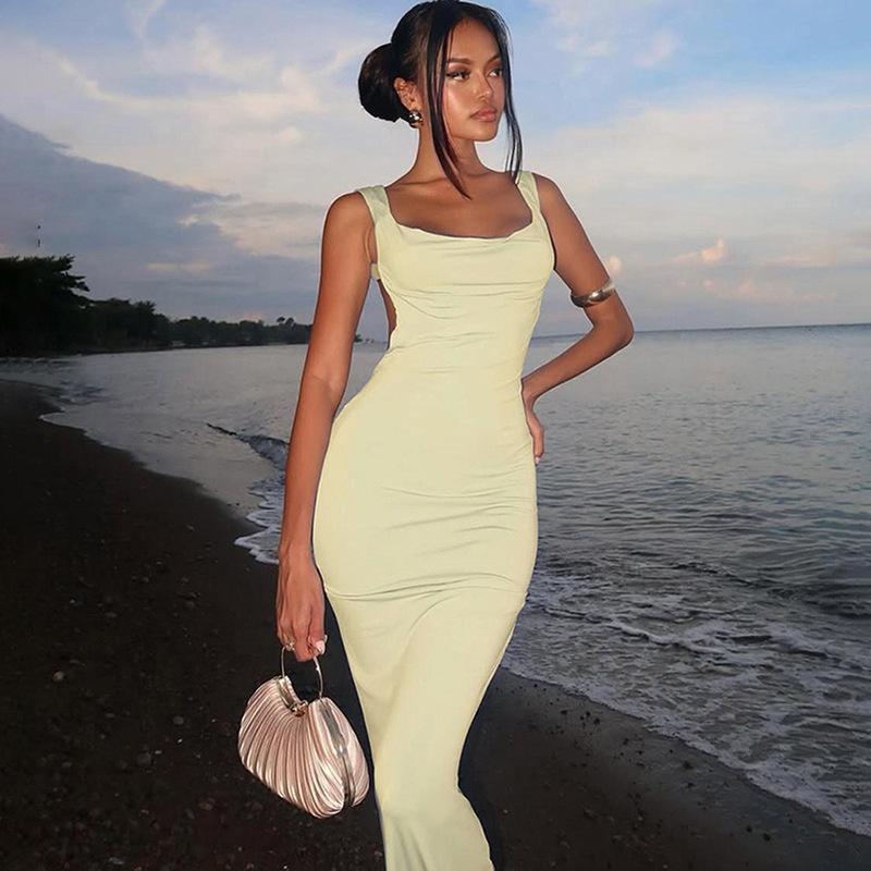 Весна Новая Женская Мода Подтяжки Сексуальное Открытое Спина Бант Облегающее Платье для Женщин L жёлтый