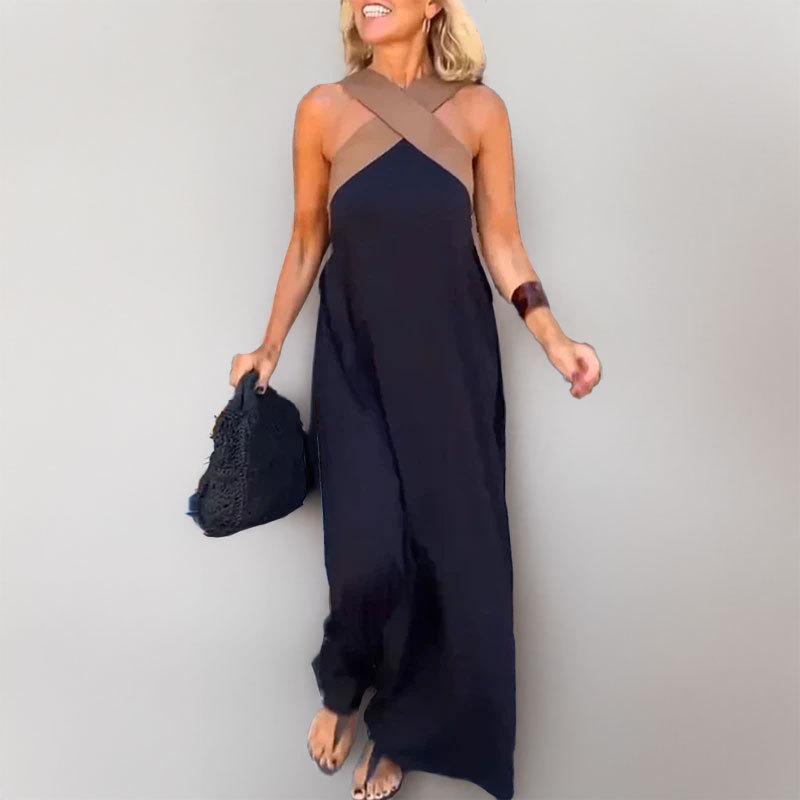 Весна Новая Женская Мода С Открытыми Плечами Многоцветное Повседневное Свободное Платье с Цветными Блоками на Горловине S