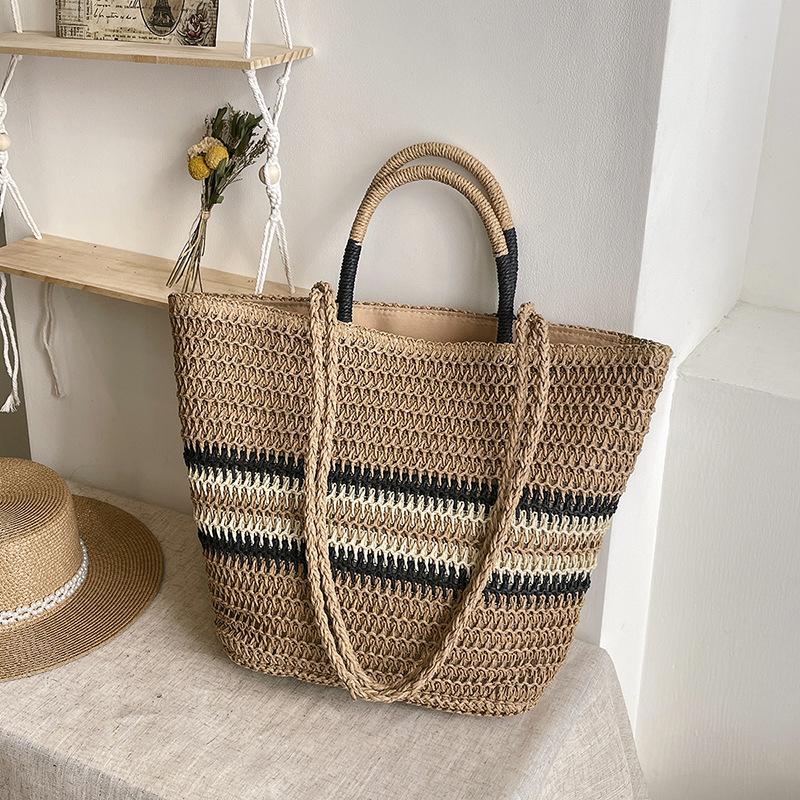 Весна Новая Мода Полосатая Сумка-Тоут Лето Соломенная Большая Вместимость Сумка Мессенджер Женская Универсальная Пляжная Сумка хаки
