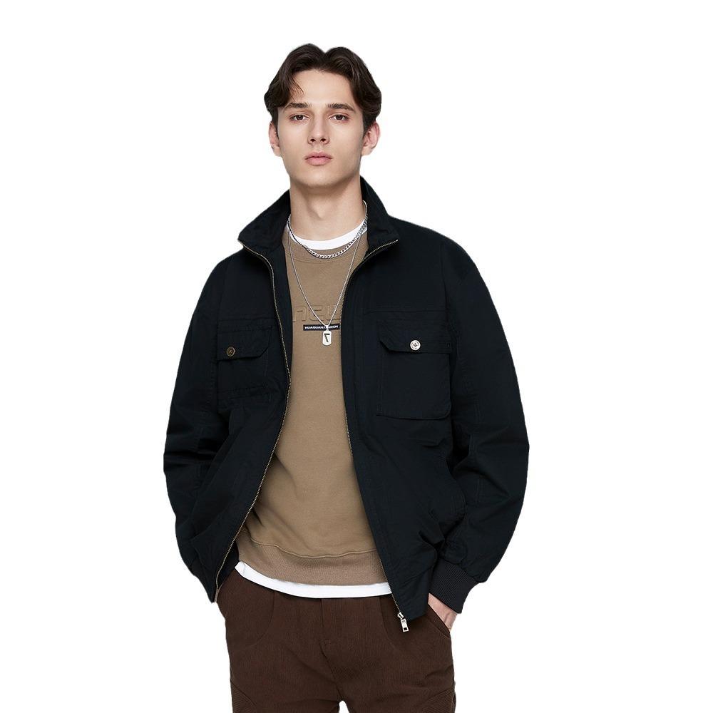 Весна и Осень Американский Стиль Рабочая Одежда Тонкая Куртка Куртка Топ Мужской Воротник-стойка Простой Личность Тренд Уличный XXXXL