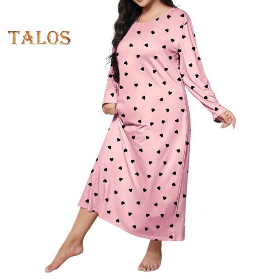 Весна Осень Женская Ночная Рубашка Плюс Размер Круглый Вырез Бабочка Леопард Сердце Принт Длинные Рукава Свободный Пуловер Ночная Рубашка Пижамы Для Мамы Дочери XL розовый