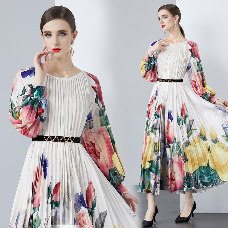Весна Осень Женские принты Оверсайз Длинные Макси Праздничные Платья Для Вечеринок С Поясом One Size