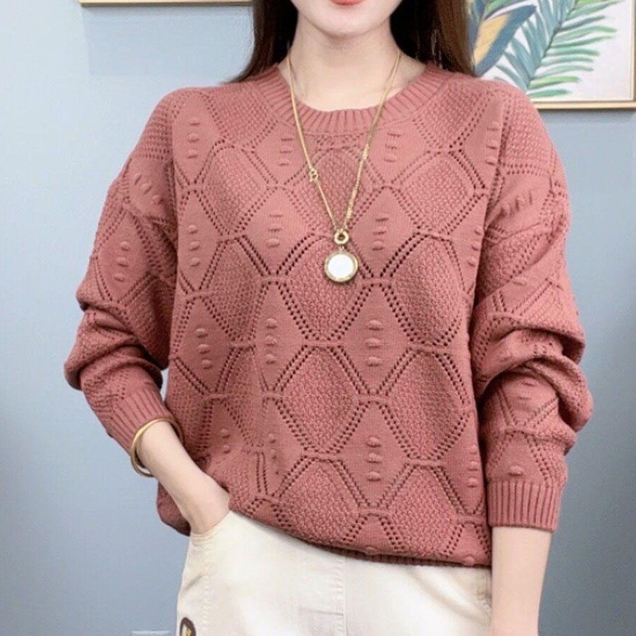 Весна Осень Женский Свободный Вязаный Ажурный Женский Пуловер Свитер Корейская Версия Длинный Рукав Топ S