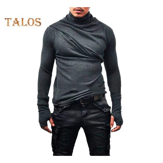 Весна Осень Мужской Верхний Защитный Шеи Высокий Воротник Slim Fit Эластичный Плиссированный Длинный Рукав Пуловер Толстовка Для Дома Спортивный Тренажерный Зал Уличная Одежда 2XL