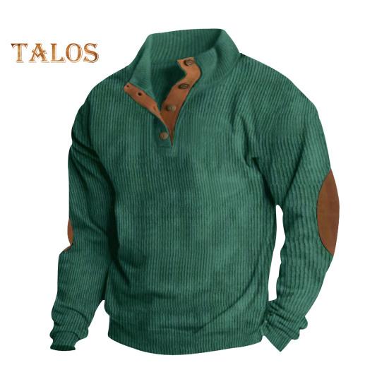 Весна Осень Мужской Топ Цветные Блоки Лоскутная Ретро Стиль Полуоткрытый Воротник-стойка Толстовка Плюс Размер Свободный Длинные Рукава Топ Повседневная Жизнь Офис И Отдых L зелёный