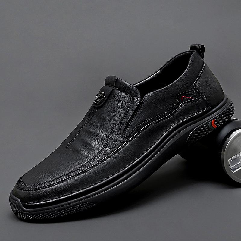 Весна Осень Натуральная Кожаная Обувь Мужские Лоферы Мягкие Повседневные Новые Дышащие Мужские Туфли Резиновые Черные / Серые Слипоны Повседневные Туфли 44 чёрный