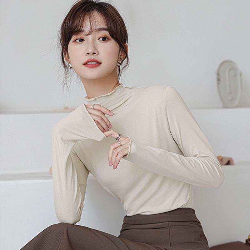 Весна и Осень Новая Футболка с Полувысоким Воротником Женская с Длинным Рукавом Зимняя Корейская Версия Тонкая Средний Воротник Внутри XL абрикосовый