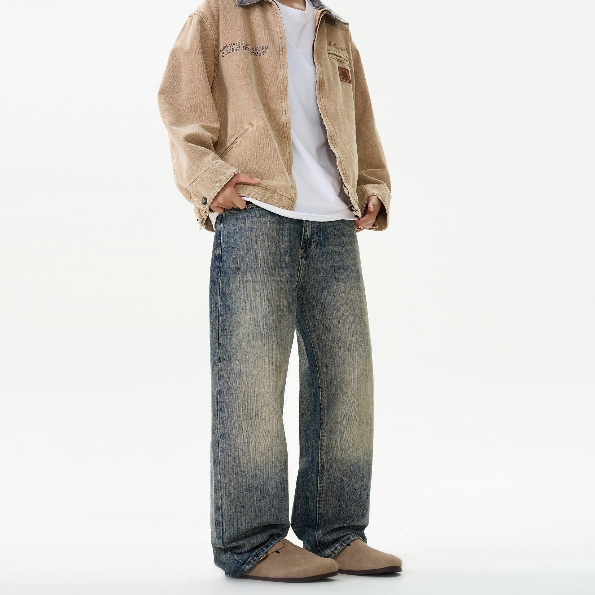 Весна и Осень Новые Американские Ретро Выстиранные Джинсы Мужские Свободные Прямые Широкие Штанины 38