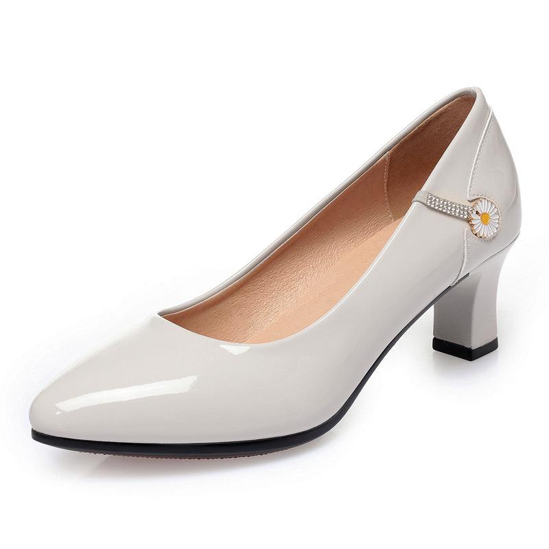 Весна Осень Остроносые Туфли-лодочки из Мягкой Кожи для Работы Ретро Универсальные Женские Туфли на Толстом Каблуке из Лакированной Кожи 35(Foot22.5cm)