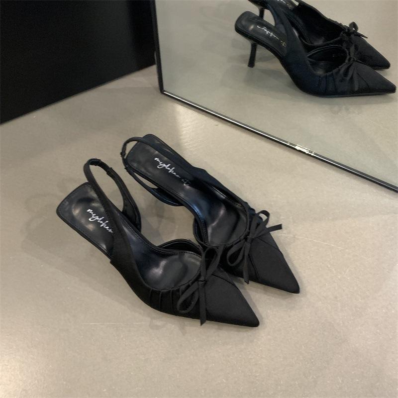 Весна Французская Сумка Голова Сандалии Тонкий Каблук Мелкий Вырез Острый Носок Маленький Каблук Одинарная Обувь Женская Обувь 39
