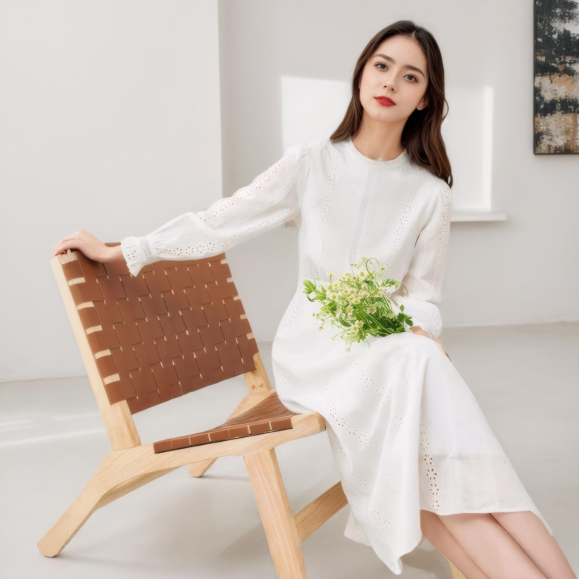 Весна и лето Новое белое платье во французском стиле для женщин Новая юбка средней и длинной длины с открытой талией XL белый