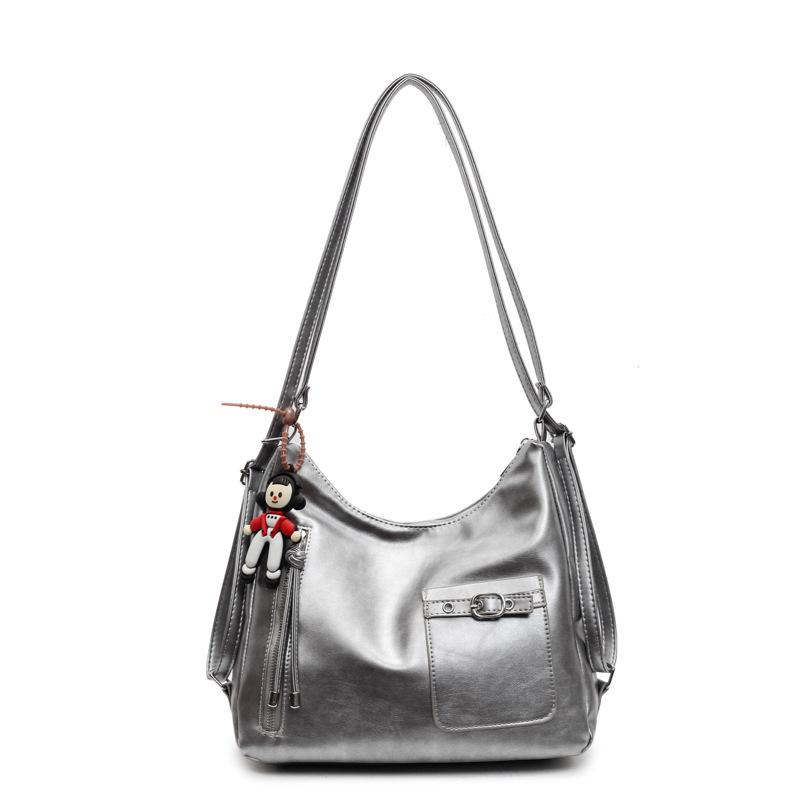 Весна и лето Повседневная мягкая кожаная большая сумка-тоут Модная сумка для поездок на работу и обратно и рюкзак серебряный