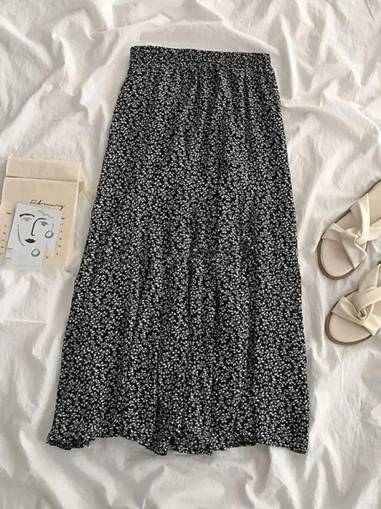 Весна-лето, новая черная, бежевая, с принтом, элегантная плиссированная юбка для отдыха и вечеринки, женская французская модная эластичная длинная юбка с высокой талией в стиле бохо