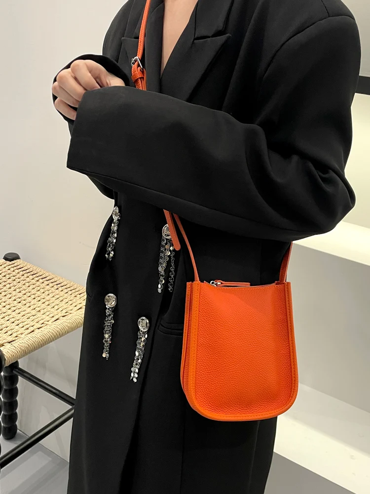 Весна-лето, новый кошелек из натуральной яловой кожи на молнии, вертикальная сумка через плечо для телефона на одно плечо, женская универсальная повседневная сумка...