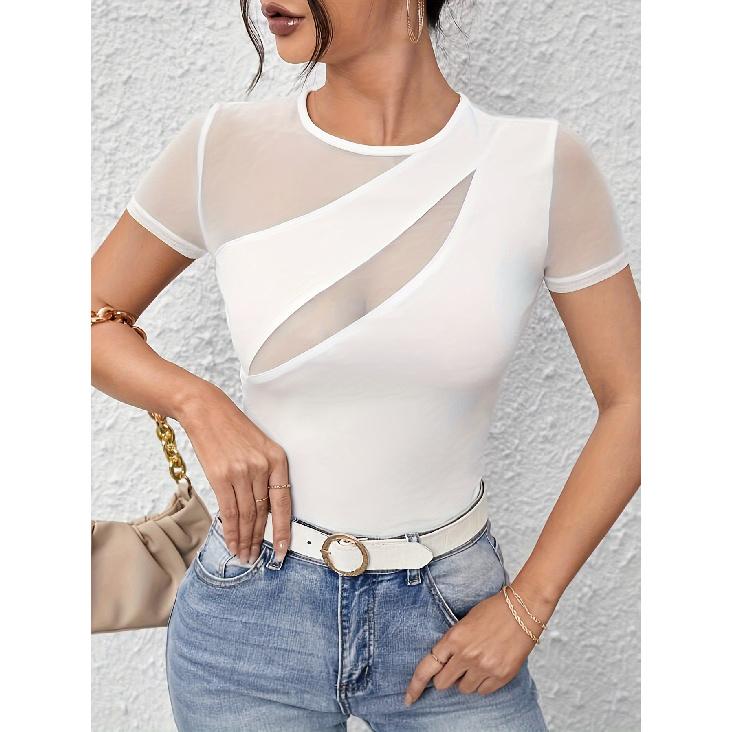 Весна, лето, осень, однотонная, с короткими рукавами и V-образным вырезом, простая футболка, облегающая, сексуальная, темпераментная, модная, женская одежда XL белый