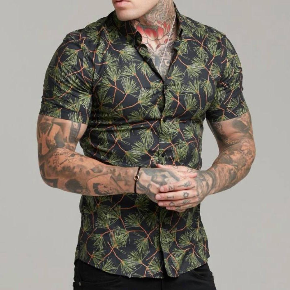 Весна и лето, тонкая повседневная мужская рубашка с лацканами, молодежная летняя печать, 3D цифровая печать, тонкая мужская рубашка M белый